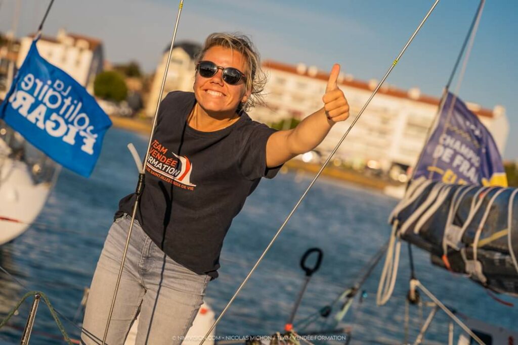Charlotte Yven, skipper du Figaro Team Vendee Formation, lors de la 1ere étape de la Solitaire du Figaro 2021 entre Saint Nazaire et Lorient – en mer le 23/08/2021